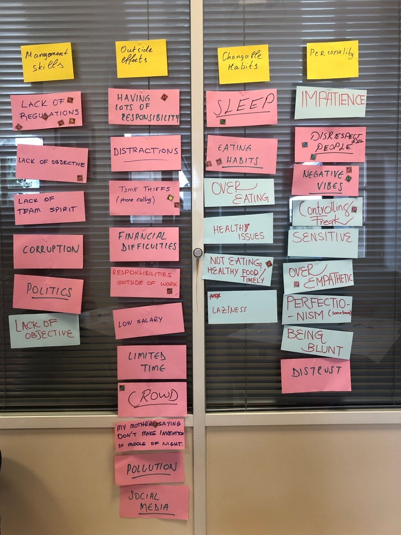 First was the Idea Generation Stage where participants were asked to work in mini-groups (3 people) by using brainstorming technology to develop possible solutions to the selected problem. The second phase in the first stage was the brain writing about crazy ideas. The second was the Idea Estimation Stage where participants worked in the same group and were asked to evaluate ideas using the "Six Hats of Bonnet" method as the third phase. In the fourth phase groups were asked to use the "Know How Wow" matrix to rank ideas. In the fifth phase, a mind-mapping method was used by groups to Create a mind map of the selected idea implementation. In the sixth phase, the groups were asked to give the final presentation on the problem and its solution technique.